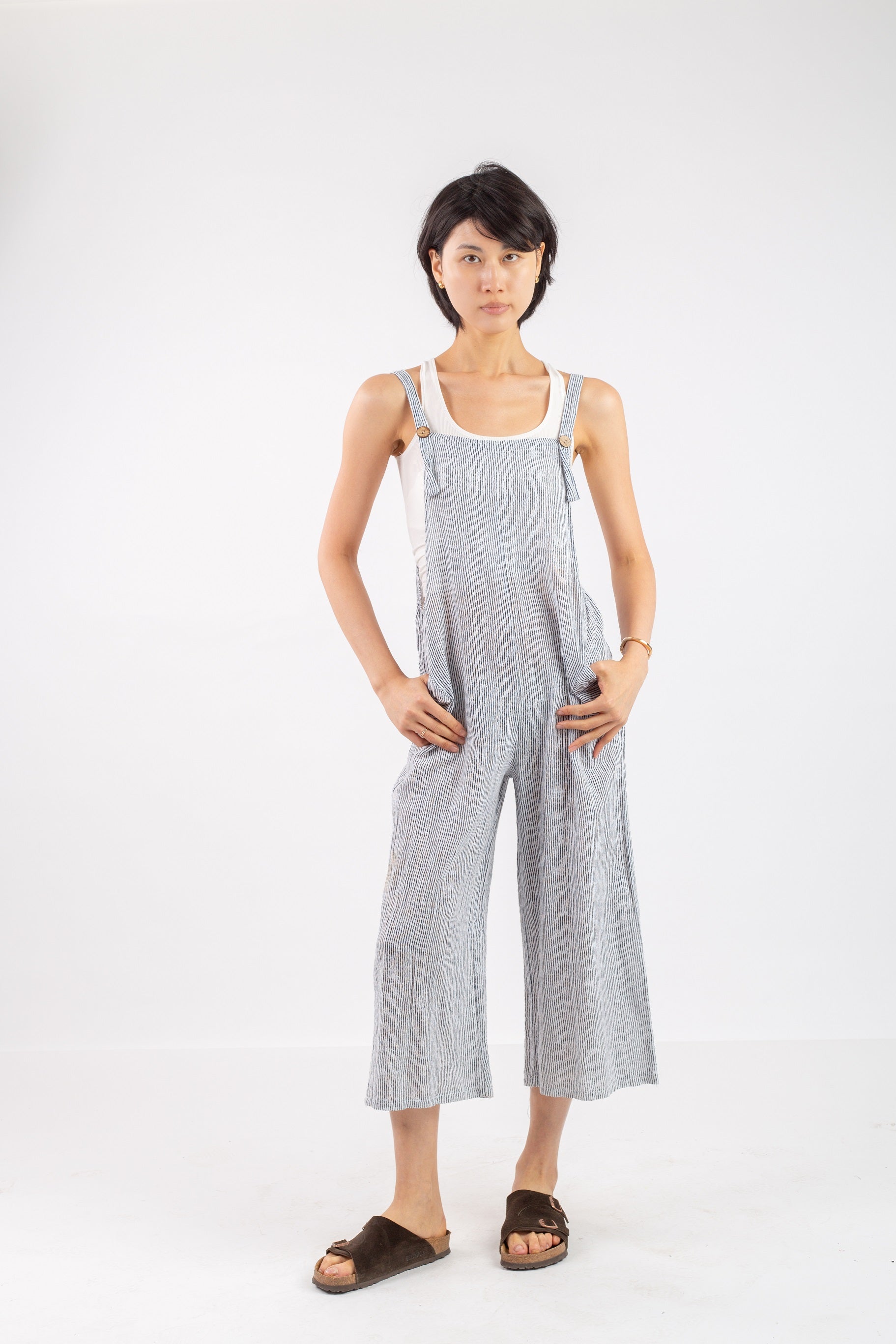 The Striped Grey Jumpsuit is made from soft cotton for maximum breathability and ease. Featuring a relaxed fit with vertical stripes that elongate the silhouette, it blends modesty with casual elegance. Perfect for daily wear, travel, or relaxed gatherings. Style it with sneakers or sandals for a clean, modern look. Available in a full range of sizes.