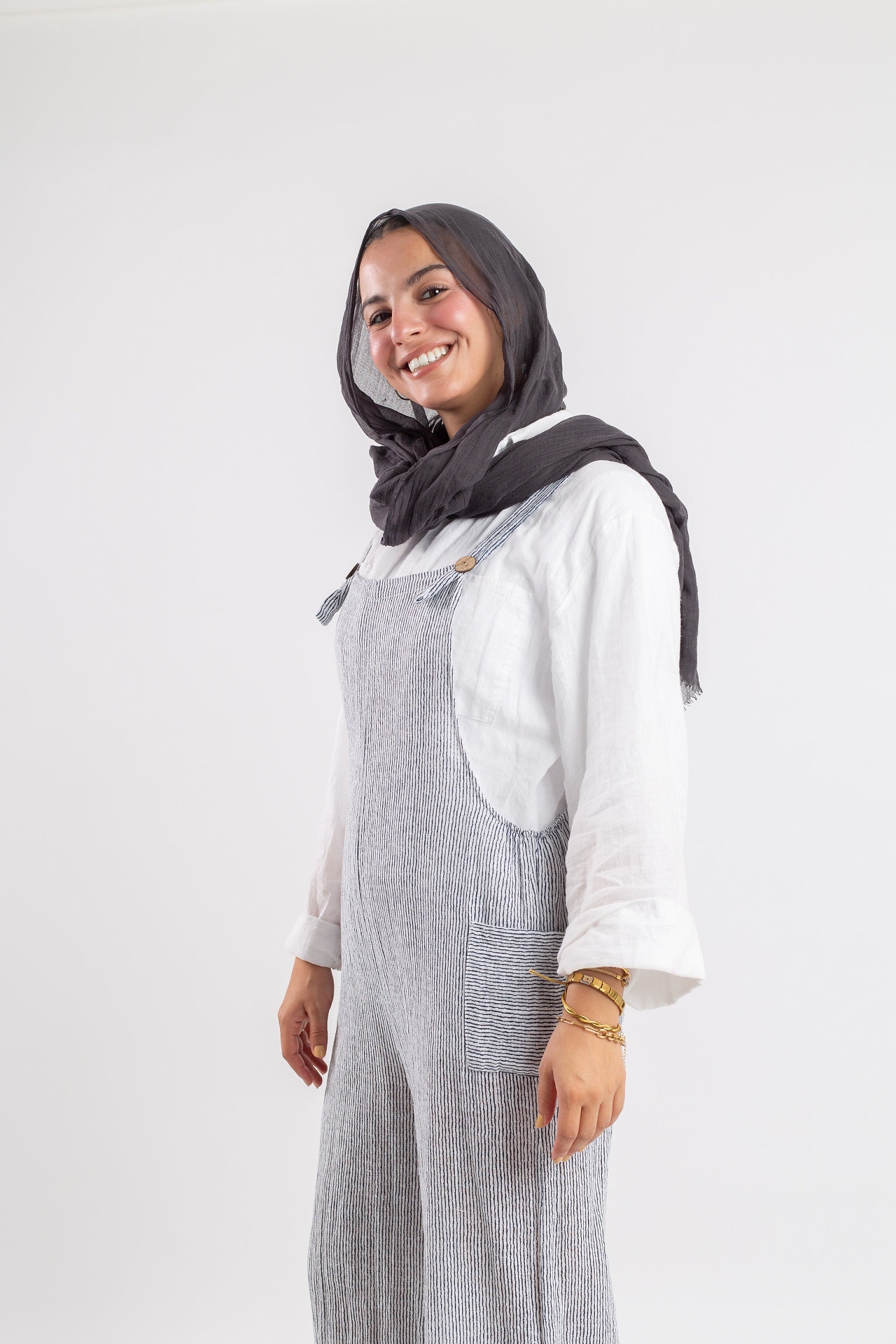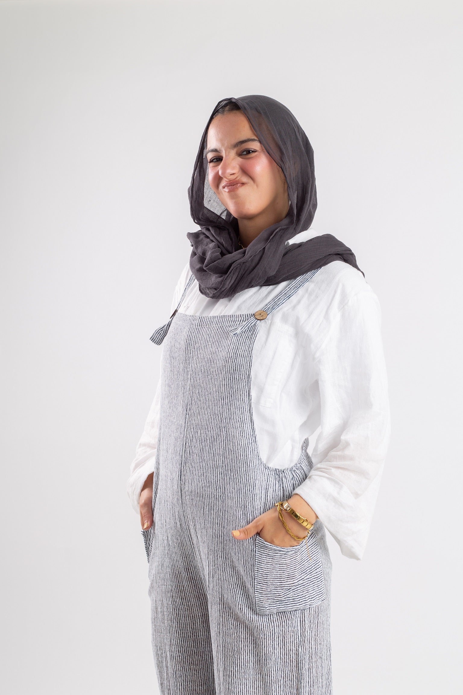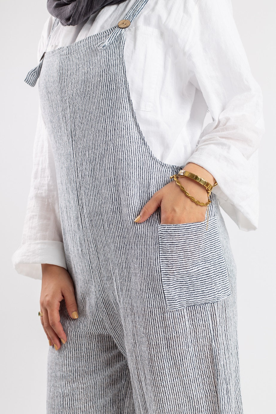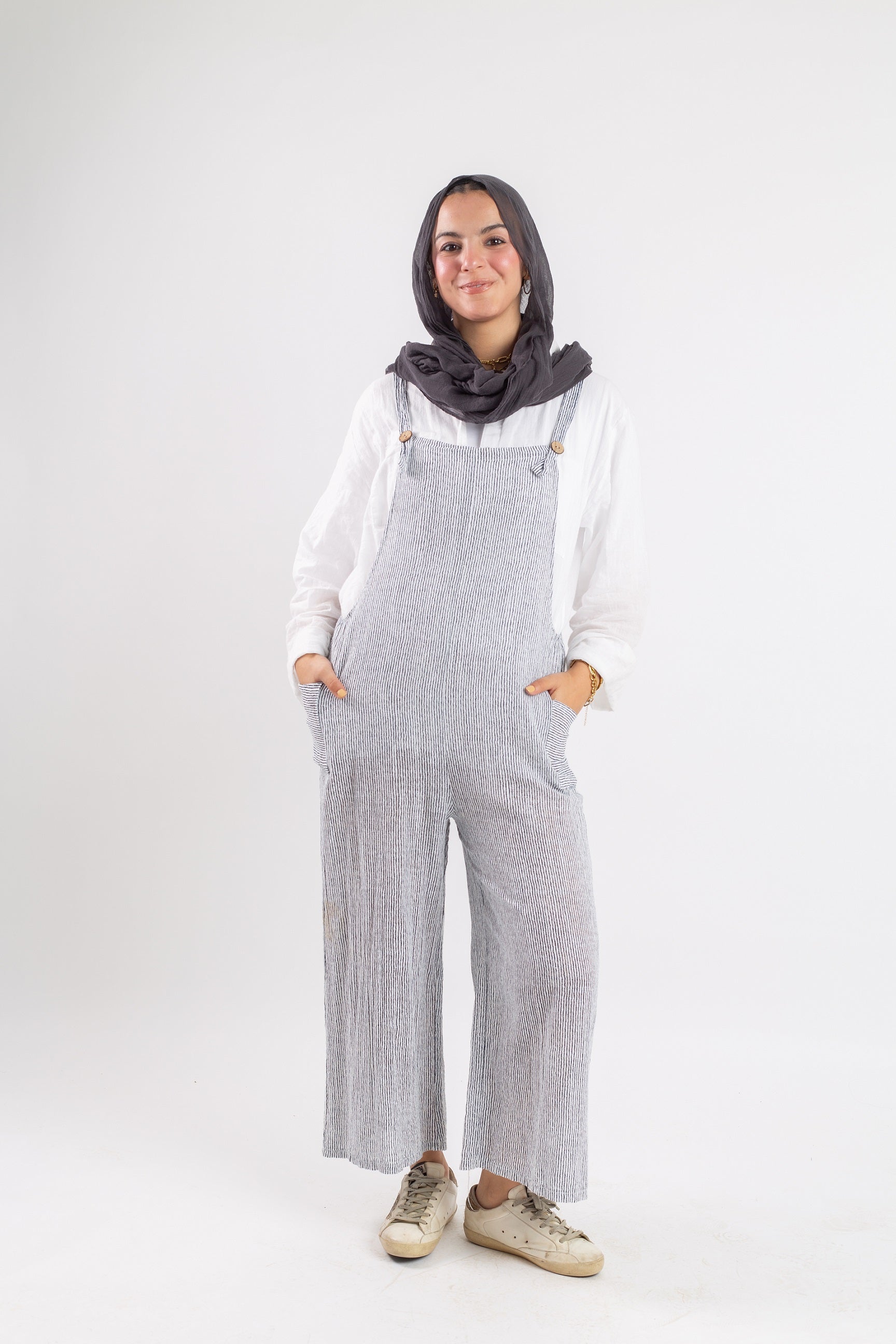 The Funky Linen Jumpsuit combines comfort with character. Crafted from lightweight, breathable linen, it features a loose, modest silhouette and bold design lines for a playful twist. Ideal for warm weather, weekend wear, or styling with sneakers and accessories for a standout look. Available in a variety of sizes and earthy tones.