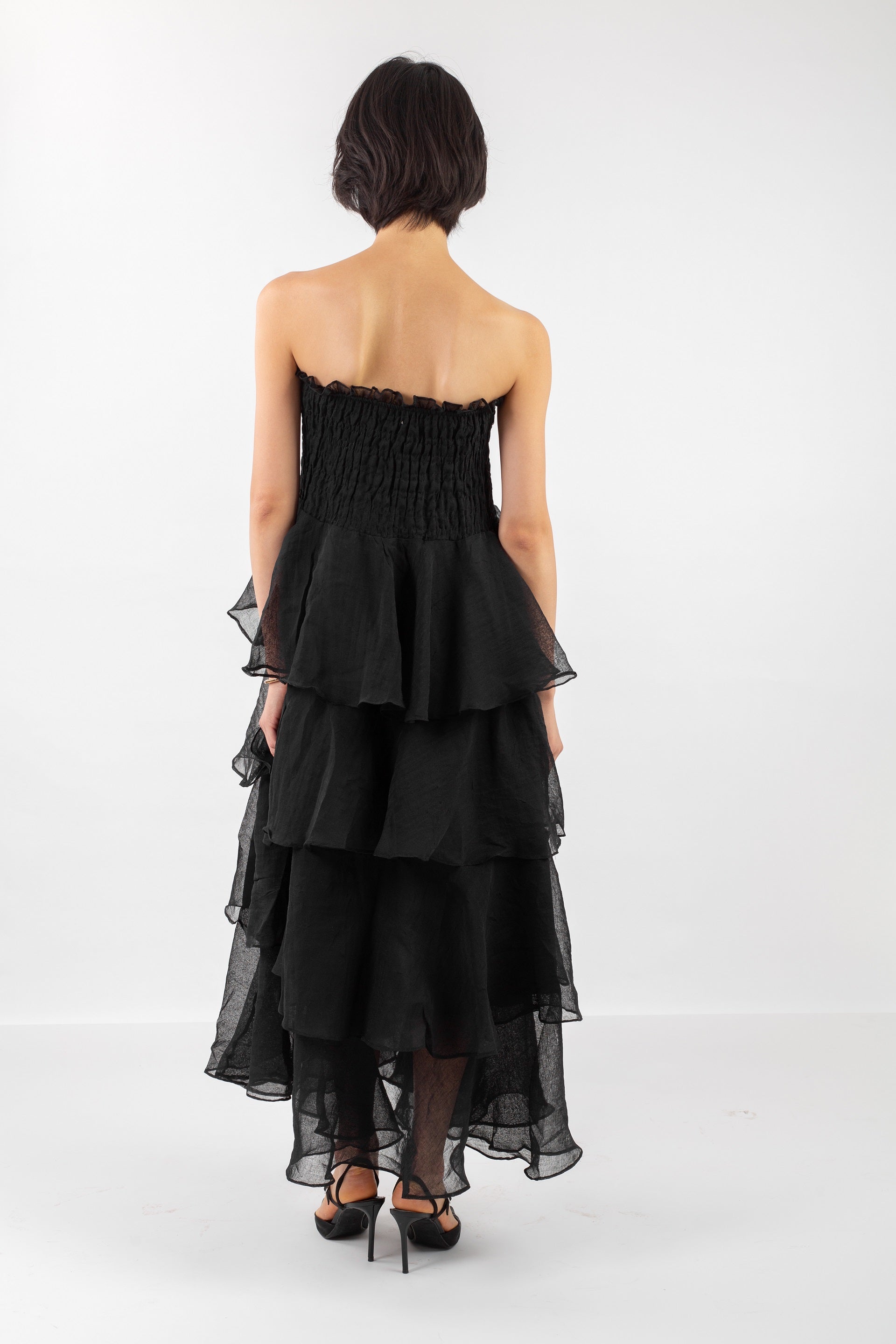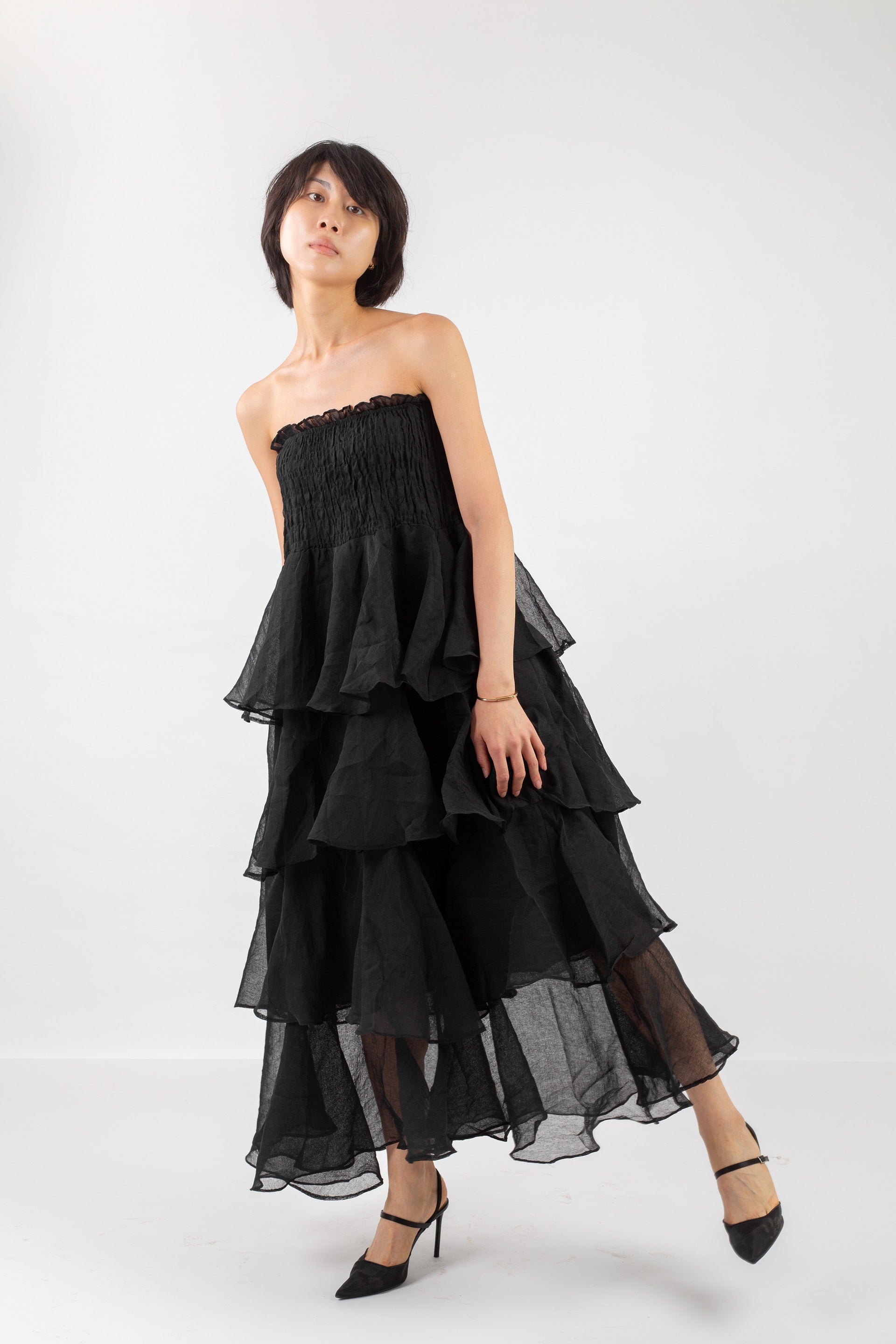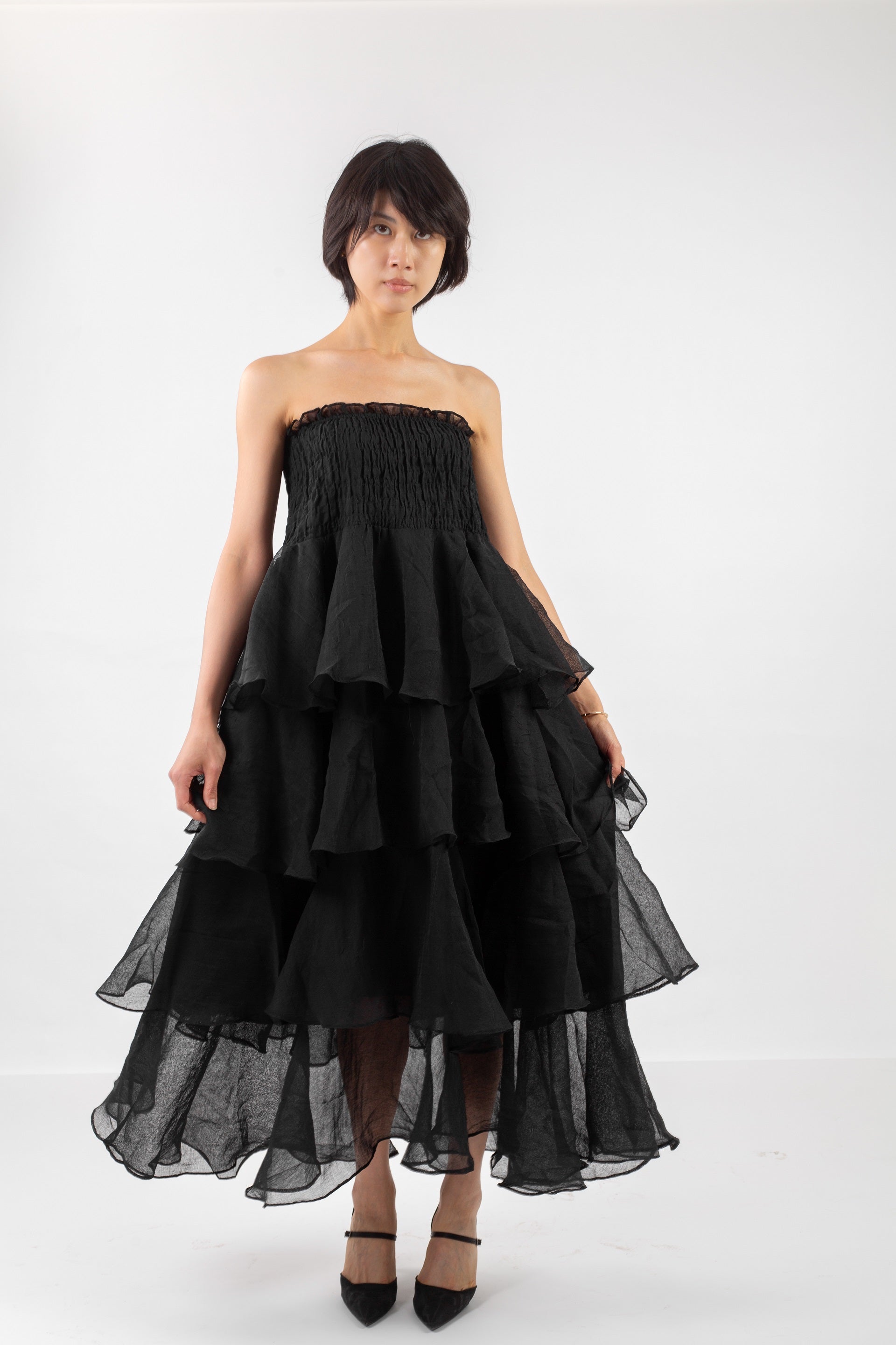 Our Ruffle Dress is crafted from lightweight chiffon for a graceful, airy feel. Designed with layered ruffles, long sleeves, and a modest cut, it moves beautifully with every step. Ideal for special occasions or soft everyday glamour, it pairs effortlessly with heels or flats. Lined for comfort and available in multiple sizes and delicate tones.